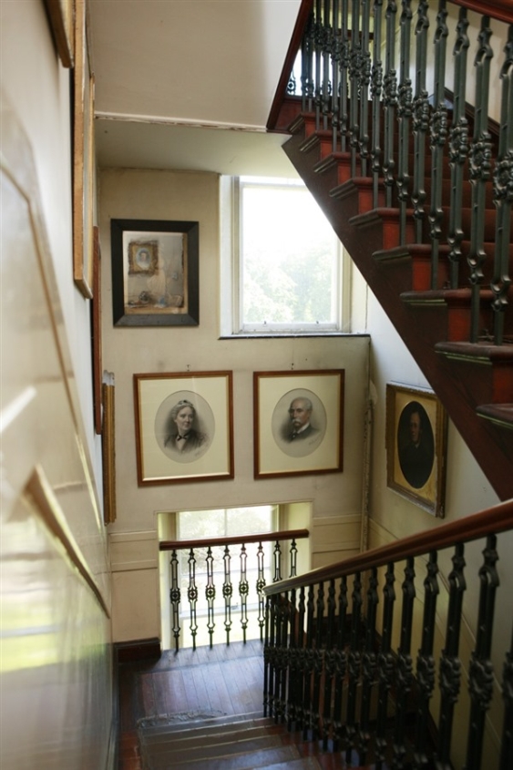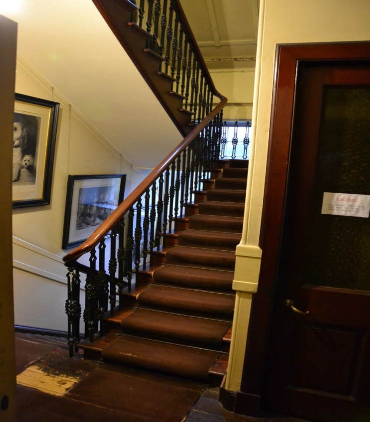 The steps have a worn carpet but when the house was fully in use its entirely possible the steps were bare wood and the carpet added at a later date.