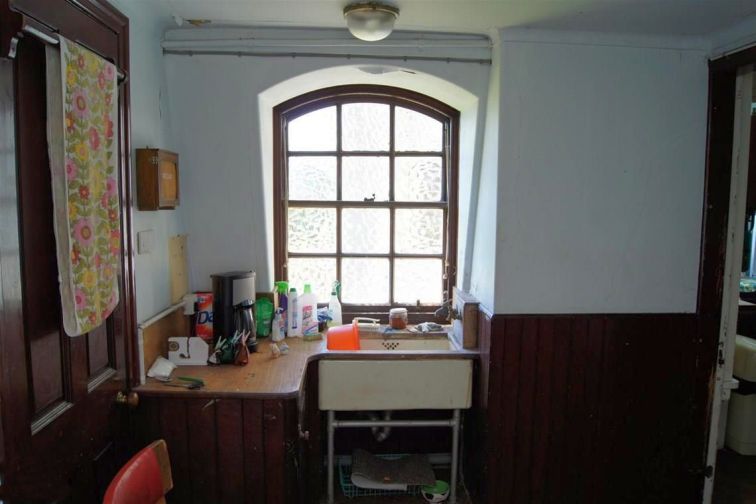 The Brushing Room is located between the Kitchen/Pantry and Press. It has a solid wood unit with cupboards below to store materials and tools required for the job.