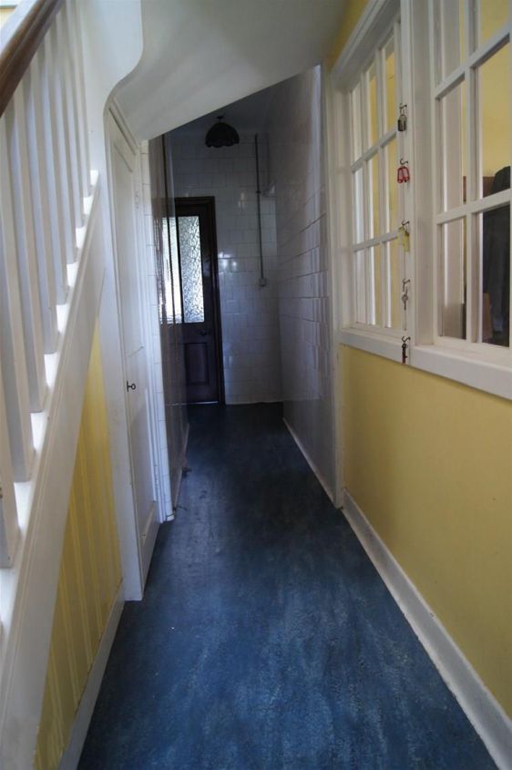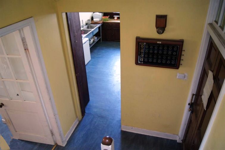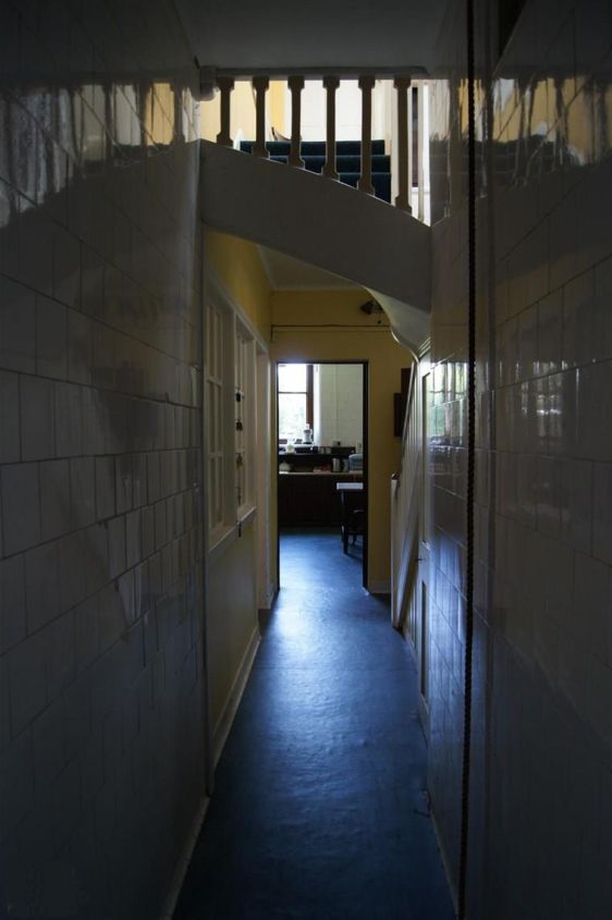 The main corridor in the Servant Quarters is lined with white wall tiles and connects the Pantry and Drummilling with the Kitchen and Back Door.